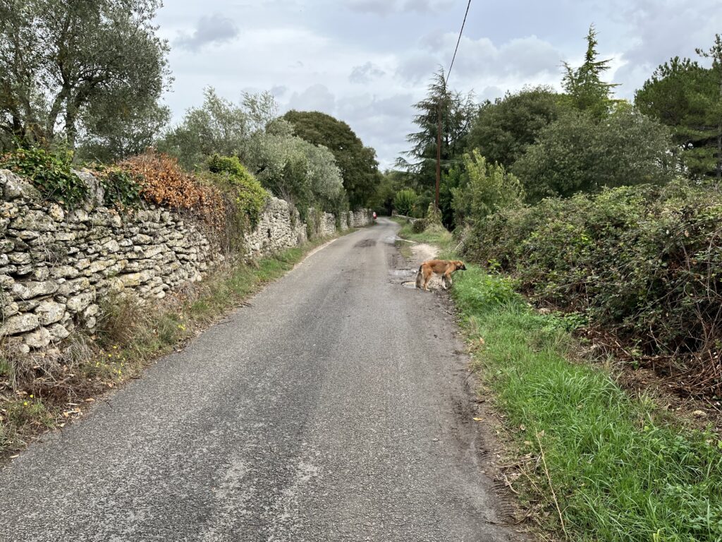 Im Gegensatz zu dem riesigen Grundstück von François-Anne. Es umfasst sicherlich mehrere Hektar Land, zum Teil mit Olivenbäumen bewachsen, von mannshohen, verwitterten, vermutlich jahrhundertalten Trockensteinmauern umgeben. Wenn ich das richtig sehe, gibt es zwei Eingänge. Von hinten erahnt man das Haus nur, von vorne versperrt ein braunes Eisentor die Sicht auf die Gebäude im klassischen Baustil aus hellem Sandstein und ebensolchem Ziegeldach.