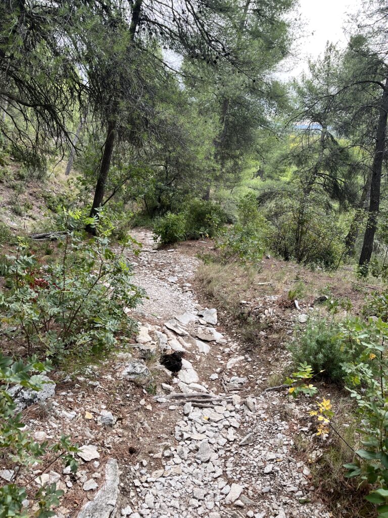 Ich rufe nach Raluca. Das Blätterdach hat sich gelichtet, doch das Château ist noch nicht zu sehen. Der weiche Waldboden ist dem typisch hellen Schotter gewichen, der Molasse, ein leicht zu bearbeitender Kalkstein, der seit der Antike übrigens in Les Beaux abgebaut wurde. Hinter der nächsten Biegung wartet Raluca. Als sie mich sieht, läuft sie mit erhobener Rute weiter. Ich folge, noch immer in der Annahme, gleich das Ziel erreicht zu haben.