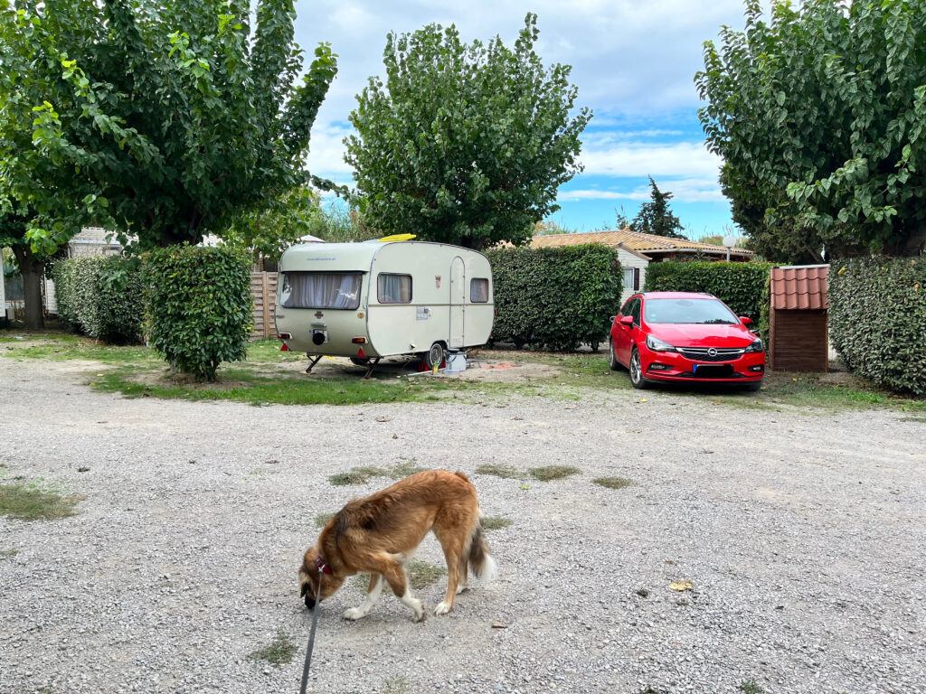 Und dann ist Schluss. Egal, was ich versuche, Little Miss Sunshine streikt. Es ist wie in Avignon – die Stützen machen mir einen Strich durch die Rechnung. Eine Bodendelle verhindert die restlichen fünfzig Meter bis zur Hauptstraße. Also kupple ich ab, um den Wohnwagen um die eigene Achse zu drehen und dann wieder anzukuppeln.